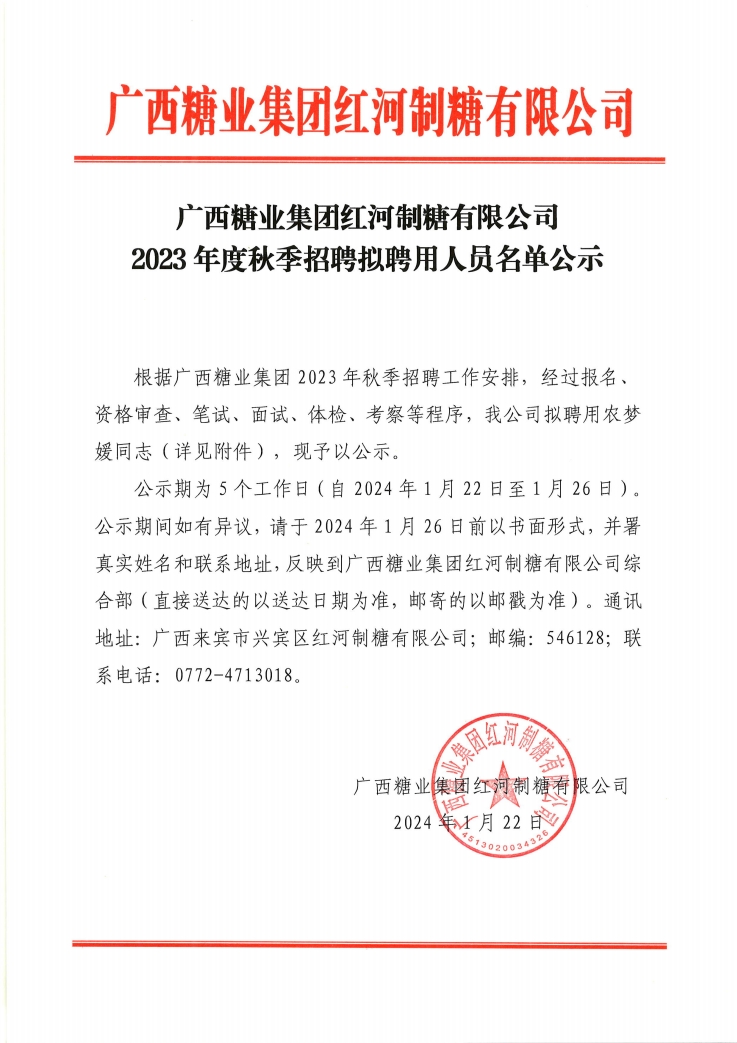 下一篇:广西糖业集团金光制糖有限公司2023年秋季招聘拟聘用职员名单公示
